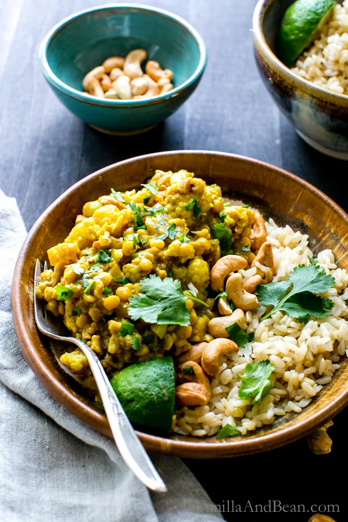 Lentil, Chard and Sweet Potato Curry (served over rice)